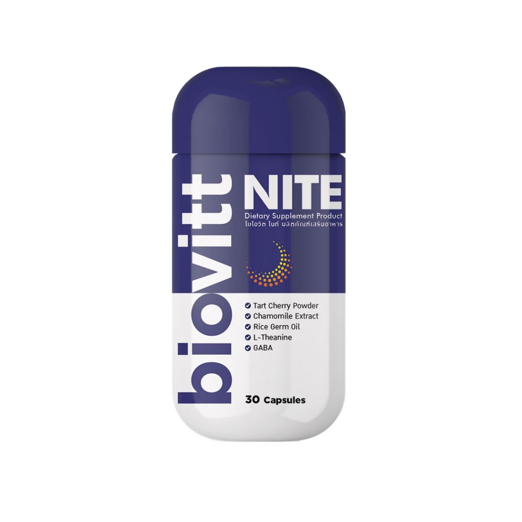 Biovitt NITE ไบโอวิต ไนท์ Dietary Supplement Product “หลับเร็ว หลับลึก หลับดี แค่มีไบโอวิต ไนท์”ใหม่! ไบโอวิด ไนท์ (biovitt NITE) ผลิตภัณฑ์เสริมอาหารเพื่อการนอนหลับอย่างมีคุณภาพ (Quality Sleep) อุดมด้วยสารสกัดธรรมชาติ และวิตามิน รวม 12 ชนิด ผสานนวัตกรรมส่วนผสมใหม่ล่าสุดระดับโลก MelaNiteTM แบรนด์แรกและแบรนด์เดียวในประเทศไทยที่ได้ลิขสิทธิ์อย่างถูกต้องอย่างเป็นทางการ ช่วยลดปัญหาการสะดุ้งตื่นระหว่างคืน เสริมการนอนหลับลึก ช่วยให้สมองผ่อนคลายหลับเร็วขึ้น พร้อมคุณสมบัติบล็อกแสงจากหน้าจอที่การทำให้หลับยากก่อนนอน สัมผัสประสบการณ์นอนหลับพักผ่อนที่เต็มอิ่มกว่า แถมด้วยโลกความฝันแสนสุข ที่คุณไม่ (ค่อย) ได้สัมผัสมานานแล้ว