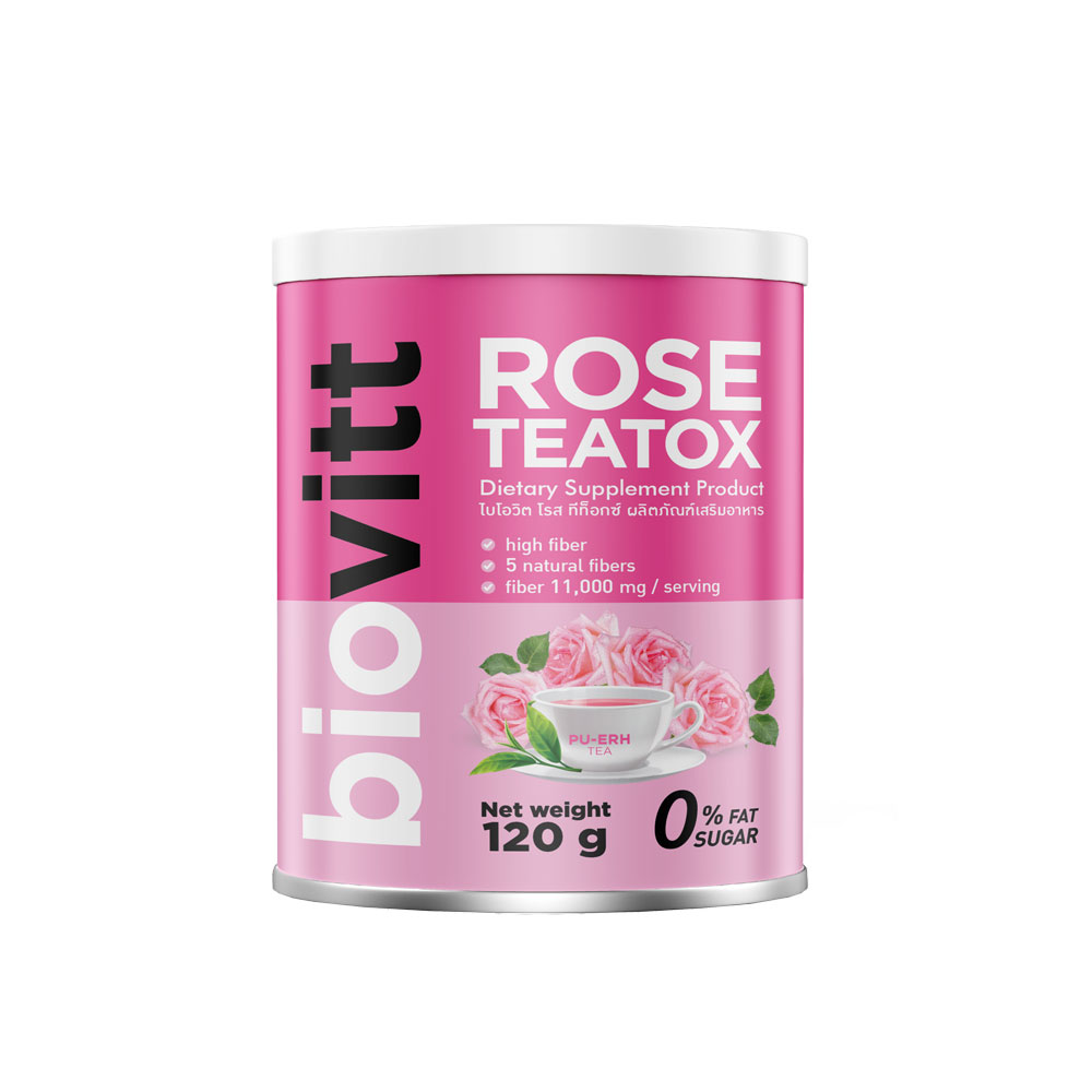 Biovitt ROSE TEATOX ตัวหอม ผิวใส ไร้พุง ดื้อแค่ไหนก็ได้เรื่อง ชากุหลาบยุคใหม่ ไม่ใช่แค่ถ่าย แต่ดูแลถึงระบบร่างกาย หอมฟุ้งตั้งแต่เปิดฝา! ด้วยกลิ่นหอมของกุหลาบน้ำหอม สายพันธุ์ดี นำเข้าจากญี่ปุ่น- มีไฟเบอร์ 5 ชนิด ไม่ปวดบิด ไม่บังคับ- อุดมด้วย วิตามิน สารสกัดรวม 21 ชนิด- กลิ่นหอม รสอร่อย หวานเปรี้ยว กินง่ายไม่ฉุน